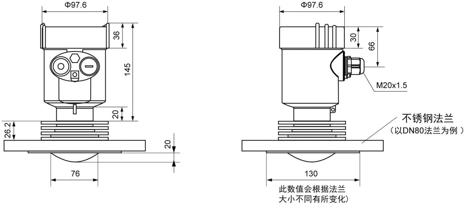 過程連接: 法蘭≥DN80